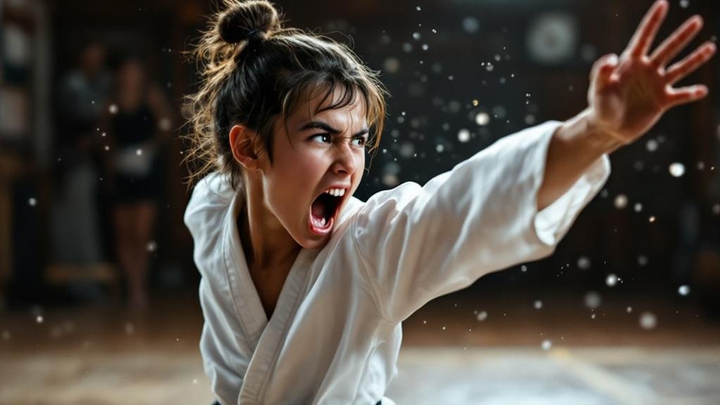 You might think kihap’s just about yelling loudly, but it’s so much more. When you harness your voice through this ancient practice, you’re unlocking your mind’s hidden strength. Through consistent breath work and confident projection, you’ll develop an unshakeable inner power that carries into every aspect of life. Don’t let self-doubt hold you back – your voice is waiting to transform you into the confident warrior you’re meant to be.